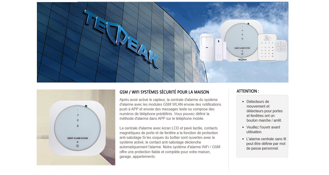 Le système anti-vol WiFi / GSM peut être étendu à tout moment, 100 capteurs peuvent être intégrés, y compris : capteurs de portes et fenêtres, capteurs de mouvement, détecteurs de fumée, sirène d'alarme extérieure, étiquette RFID, télécommandes, etc. Contactez-nous si vous en avez besoin.