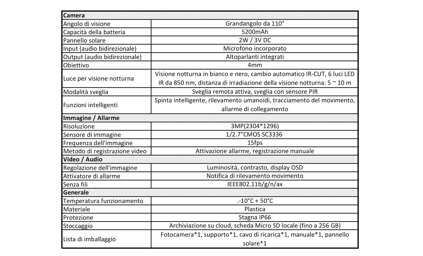 Telecamera Esterna Solare con Batteria e Pannello Solare O11